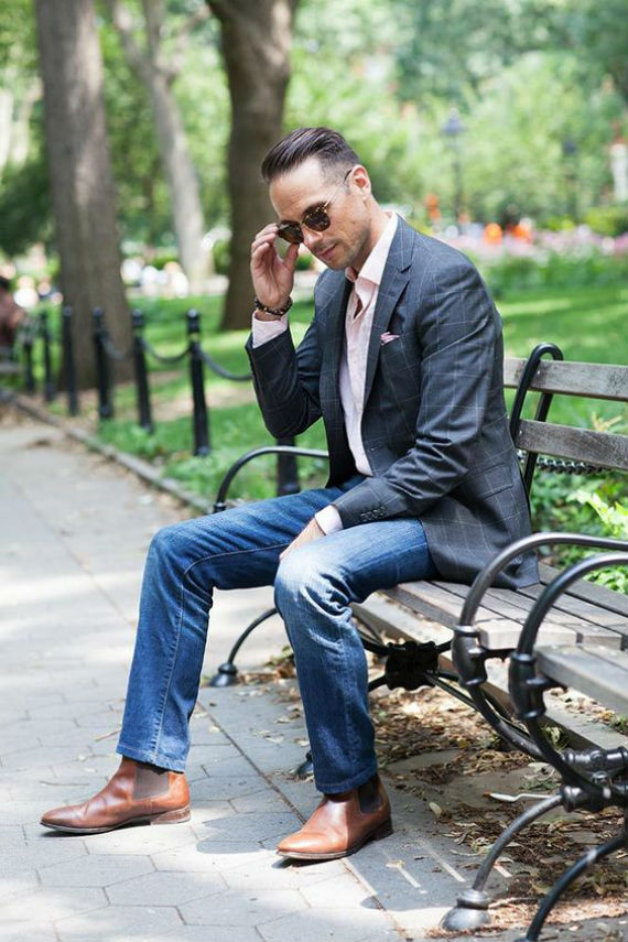 O mesmo vale para o terno, que pode parecer muito sisudo para alguns. Basta lançar mão de alguns recursos como arregaçar as mangas, desabotoar a camisa e escolher um calçado relax para parecer extremamente cool. Eu só não indicaria as sandálias da foto, mas um sneaker bacana pode complementar com perfeição sem deixar o look menos despojado.