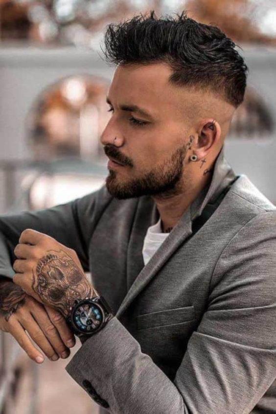 O topo bagunçado (messy top) com as laterais bem baixas é uma solução para quem não quer muito trabalho na hora de arrumar a cabeleira. Essa tendência já vem de outros anos, mas agora surge com um contraste muito maior entre os cortes de cabelo masculino para 2020.
