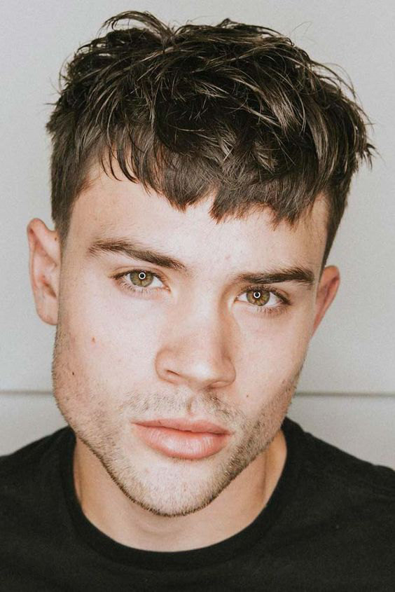 Se dá melhor com esse corte quem tem o cabelo cacheado ou ondulado, se seus fios são muito lisos você periga ficar com uma franja caindo nos olhos e sem o efeito bagunçado, uma melhor opção seria o corte com franja, falo sobre ele mais abaixo.