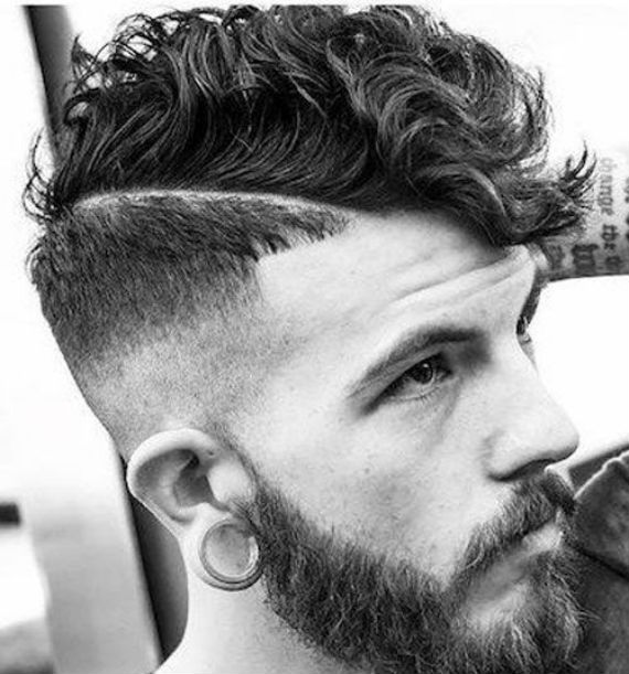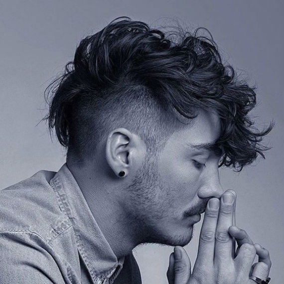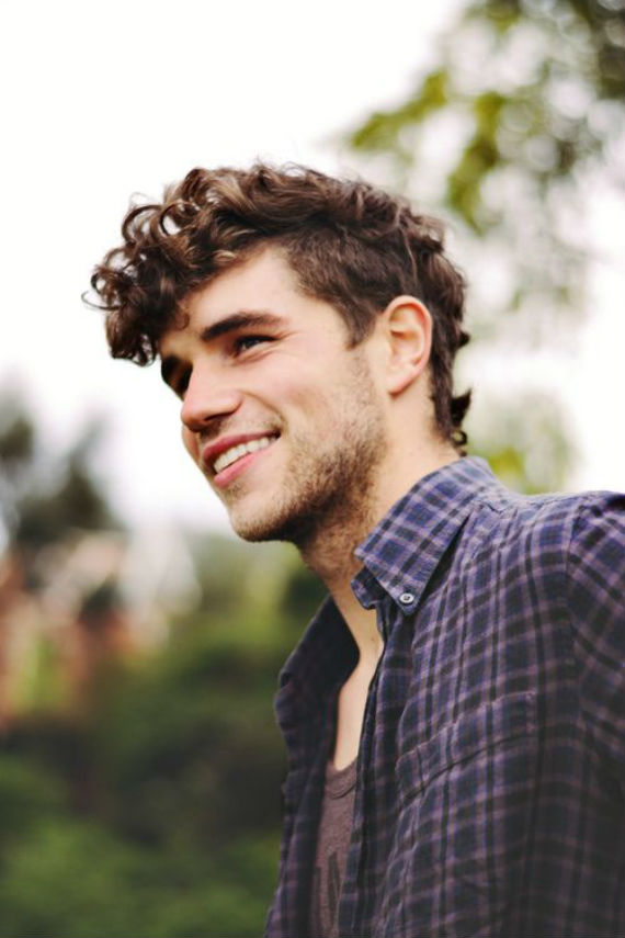 Sugestão 1: quem não tem cachos muito pequenos pode se beneficiar do corte com laterais feitas na máquina e topo desgrenhado. Trata-se de uma tendência que vem crescendo nos últimos anos para quem tem esse tipo de cabelo. A franja é uma boa para esconder a testa grande!