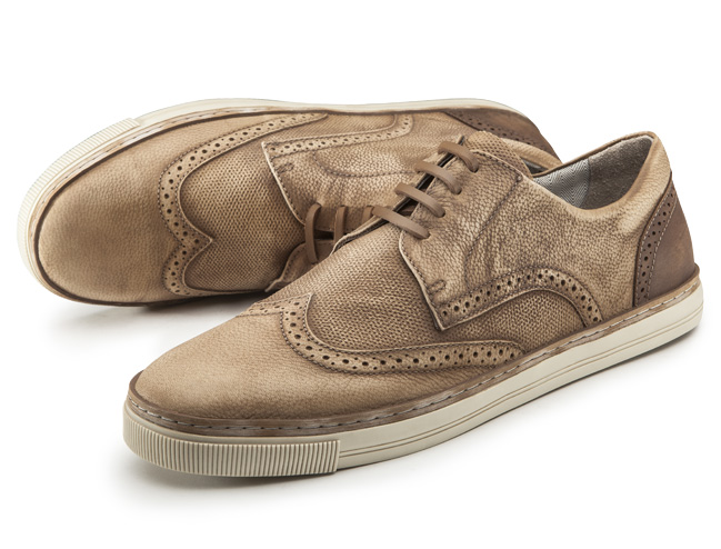 Camurça imitando tecido deixa o calçado mais sofisticado.