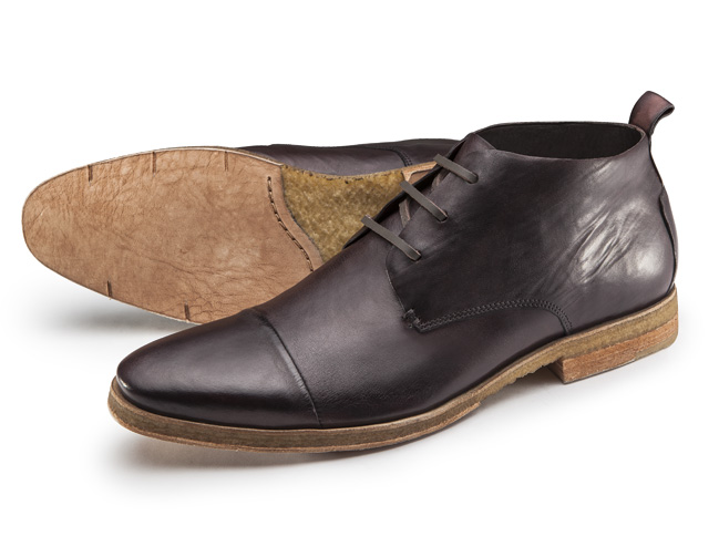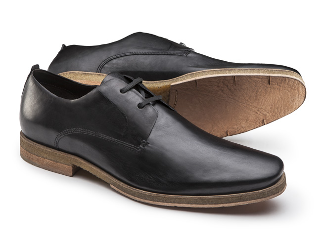 Solado de couro imita madeira em um efeito bem interessante.