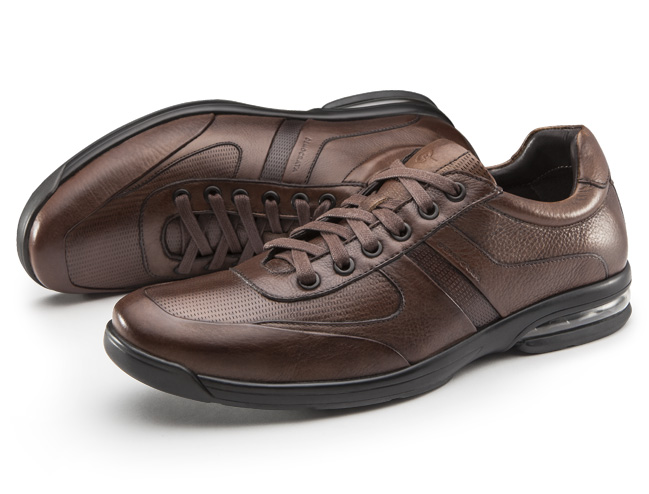 Couro perfurado em todo o cabedal dá conforto térmico durante os dias quentes.