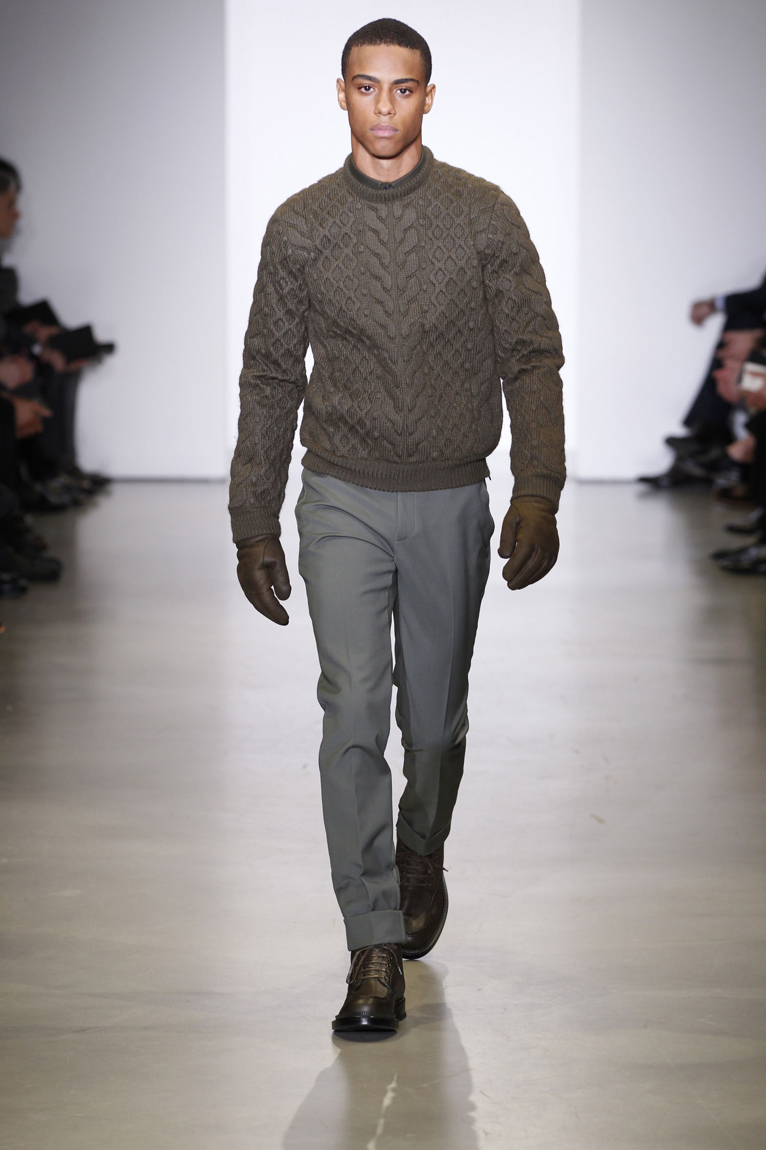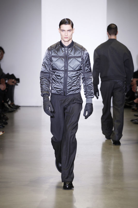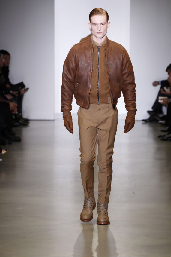 Com destaque para o workwear, onde peças utilitárias como jaquetas bomber de couro de pele de carneiro, overshirts e pullovers apareceram combinados com alfaiataria clássica, a Calvin Klein Collection acertou nos shapes mais acertados, mas não conseguiu me convencer com as peças oversized.
