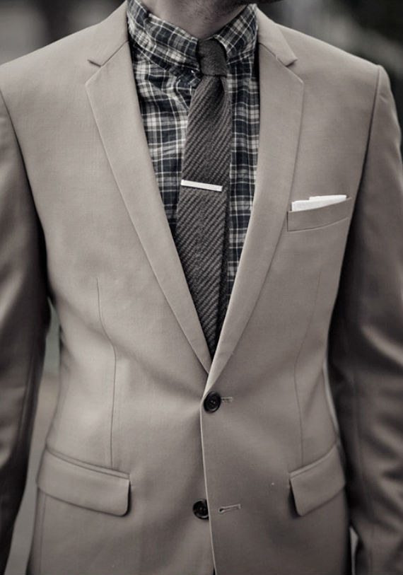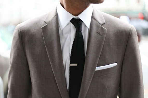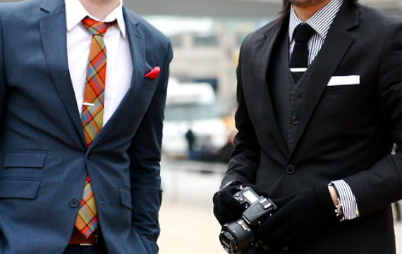 Pois é, há quem goste de usar o prendedor mais abaixo, entre o terceiro e o quarto botão, mas como deixou bem claro o sujeito da direita, se você usar um colete ou um paletó de 3 botões o prendedor não aparecerá.