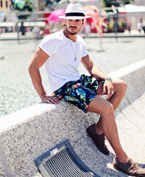 Mesmo sendo uma peça despojada, usada em ambientes bem descontraídos, também é possível montar um look com uma pegada fashion bem forte usando shorts. Começando pela camisa, como dito acima, passando por um sapato mais sofisticado (ainda casual) e acessórios estilosos, como óculos escuros com armação bacana e um Panamá de qualidade. Aqui o caimento fala alto, então tente encontrar peças que sejam confortáveis mas não estejam largas demais.