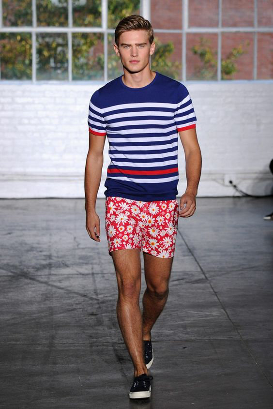 A tendência atual se aproveita das estampas tropicais e de cores contrastantes, típicas de shorts de praia. Você não precisa optar por algo assim, existem alternativas com cores mais sóbrias, com listras, com micro estampas e até sem nenhuma estampa.