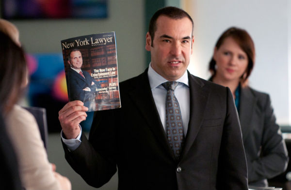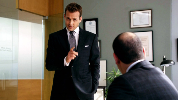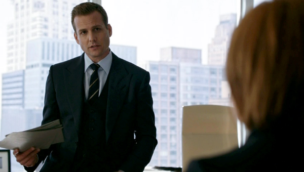 A certa altura do episódio piloto de Suits, o advogado Harvey Specter pergunta a seu recém contratado e mal vestido assistente Mike Ross: