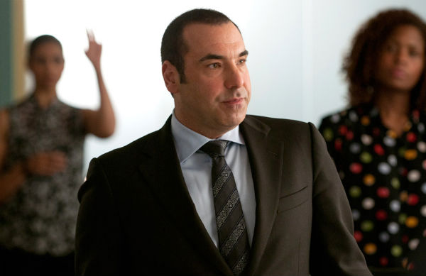 O ator Rick Hoffman é um pouco mais rotundo que seus dois companheiros de série, mas nem por isso menos elegante, vestindo ternos Boss, camisas Zegna, gravatas Armani e sapatos Prada, confirmando que boa parte do salário destes advogados é usada para financiar boas roupas! É interessante que mesmo com a barriguinha sobressaindo, seu figurino abusa dos paletós de 2 botões, mas compensam o destaque que pode ser dado pela peça ao abdômen usando gravatas largas com estampas fortes e colarinhos bem abertos, desviando nossa atenção para o rosto ovalado do ator, seu sorriso de dentes grandes e seu jeitão de vilão.