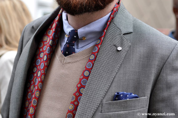 – O bolso do paletó quase nunca está vazio, o lenço sempre é uma opção para complementar o look;