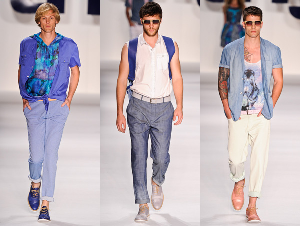 O styling do desfile foi correto em alguns looks, principalmente quando fez uso de blazers e casacos em tecido leve, com cara de alfaiataria esportiva, assim como aqueles em que sapatos arremataram bem a produção, mas escorregou em outros, criando um visual incoerente, onde algumas peças ficaram com ar de roupa barata. Fiquei especialmente incomodado com os cintos coloridos com jeito de produto chinês de terceira categoria.