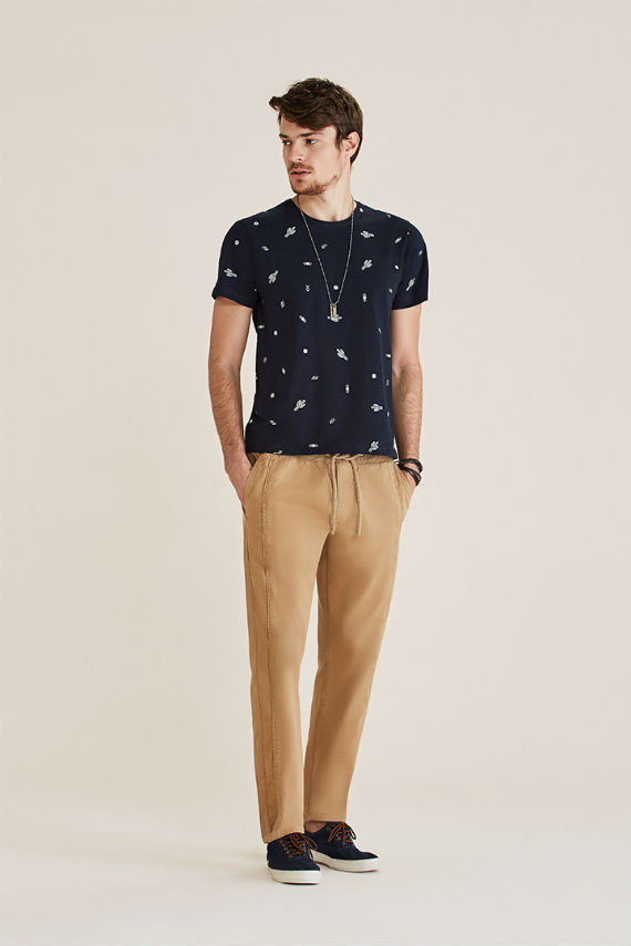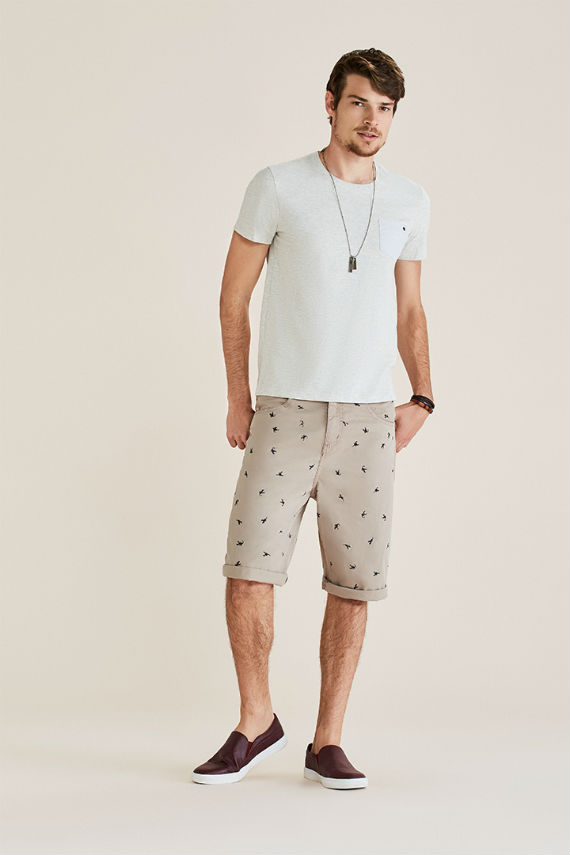 A natureza aparece também como referência nas cores que refletem florestas, desertos e, é claro o mar e os temas náuticos. Micro estampas, listras e folhagens reforçam a ideia que aparece em bermudas, camisetas e algumas blusas que devem cobrir a meia estação, afinal o clima parece meio incerto neste final de ano.