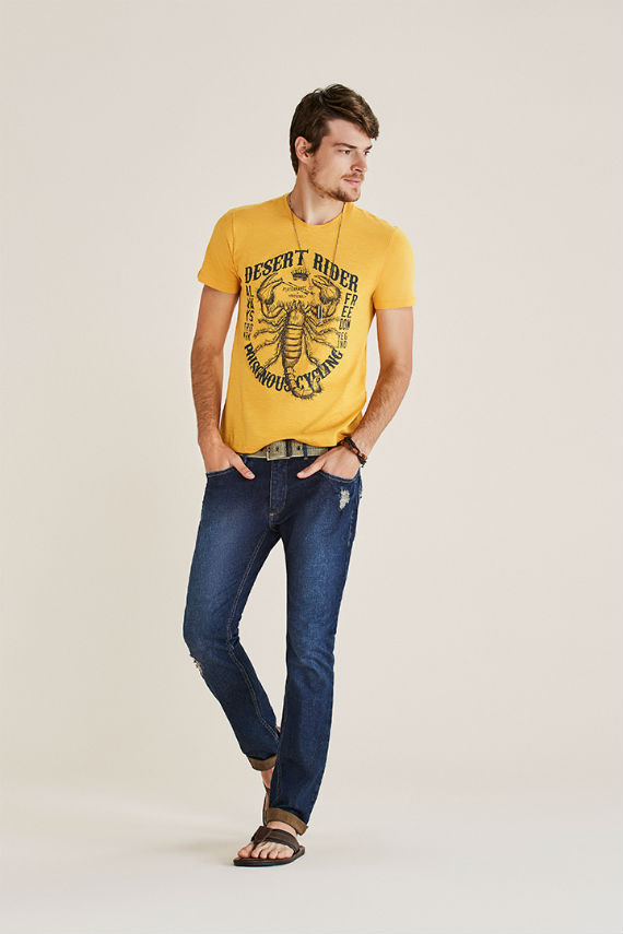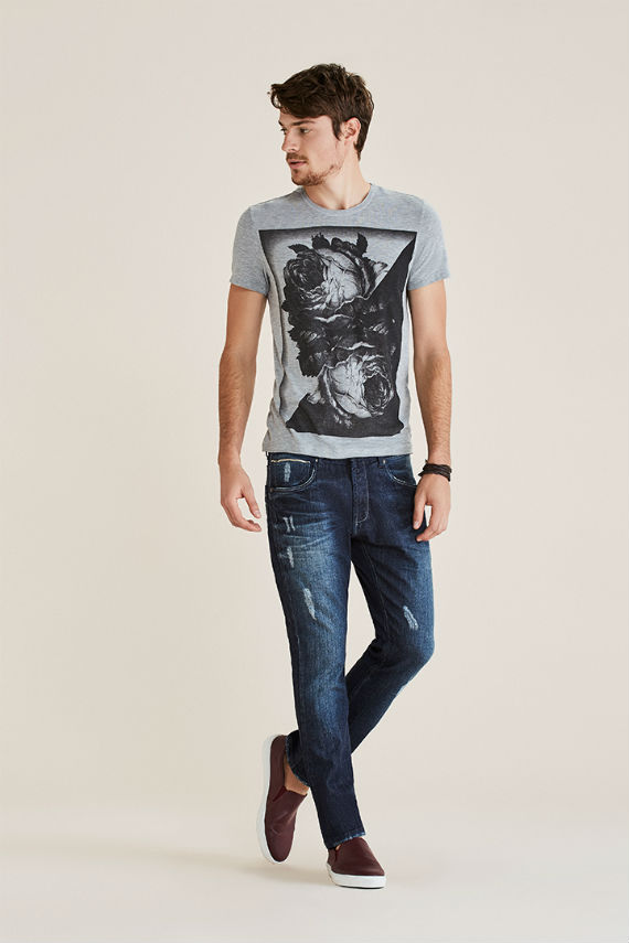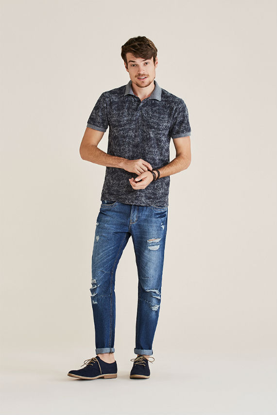 - Jeans escuros com pequenos puídos são uma boa opção para a temporada;