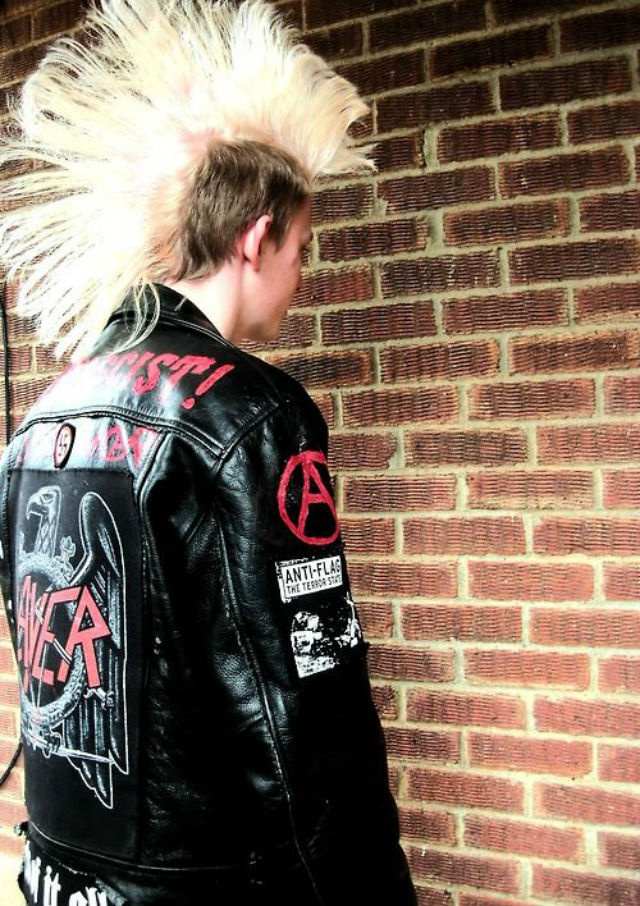 No outro lado desse espectro fashion temos o visual agressivo das bandas punk com suas tachas, correntes e jaquetas de couro, indumentária que migrou para os metal heads quando foi adotada por bandas como Judas Priest.