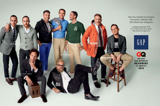 A partir do dia 27 de setembro chegam às lojas da Gap uma coleção cápsula desenvolvida pela GQ Team, grupo assim conhecido por reunir os melhores novos estilistas de moda masculina segundo a revista GQ americana. Os escolhidos são BLK DNM (J. Lindeberg), Ian Velardi, Mark McNairy New Amsterdam, Ovadia & Sons, Saturdays e Todd Snyder e suas criações, que incluem camisetas, moletons, cargos, jeans, blazers e casacos, podem ser vistas nas fotos de divulgação da marca: