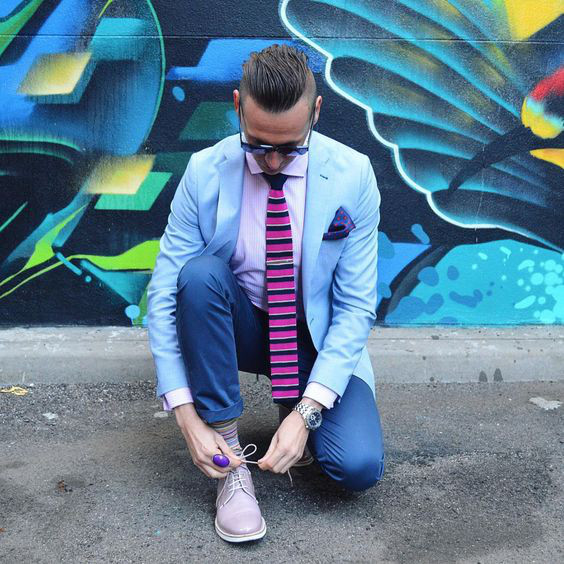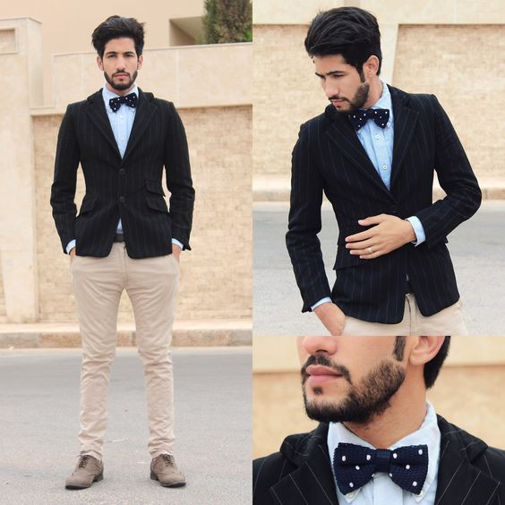 Tanto em uma combinação formal (dentro do possível) quanto na casual a gravata de tricô fica bem com suspensórios. O melhor aqui é escolher uma peça que não contraste tanto a fim de montar um look coeso.