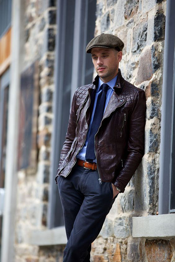 4 – Gravata de tricô com jaqueta de couro