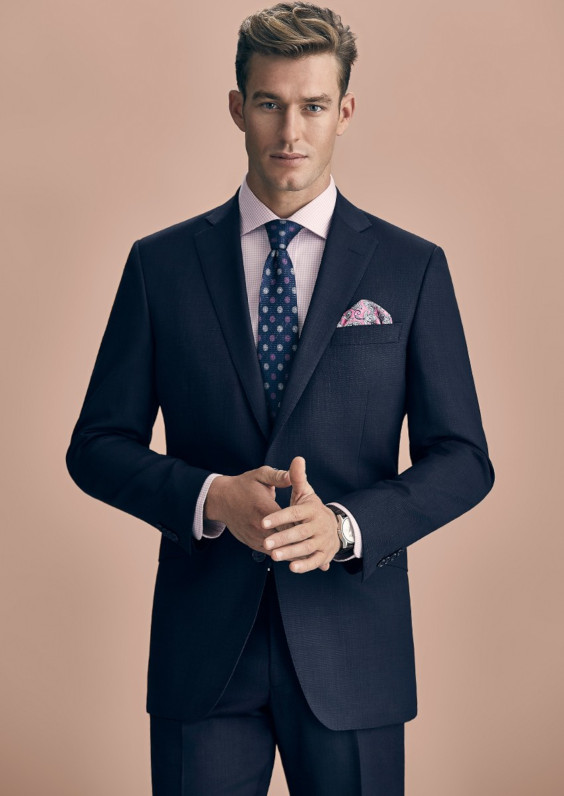 Uma alternativa para quem gosta de um pouco de cor no traje social é a camisa em um tom de rosa bem suave. Embora alguns homens tenham preconceito com o rosa, as combinações com terno marinho ficam extremamente interessantes e modernas. Para uma escolha certeira na gravata, opte por um acessório com fundo marinho e micro estampa próxima ao tom da camisa.