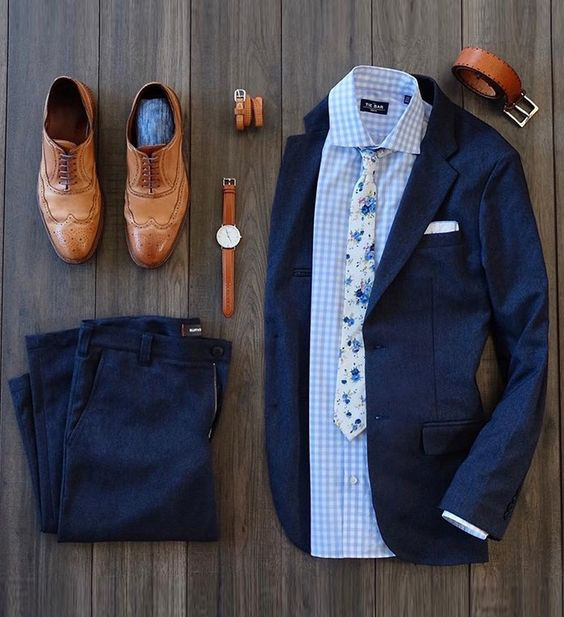 para ternos e costumes azul marinho você pode usar tanto o preto quanto o marrom, mas se for um casamento ou uma ocasião mais formal o preto é o mais indicado. No trabalho ou em outro momento que não seja tão formal você pod usar o marrom ou até um calçado vinho, se quiser arriscar.