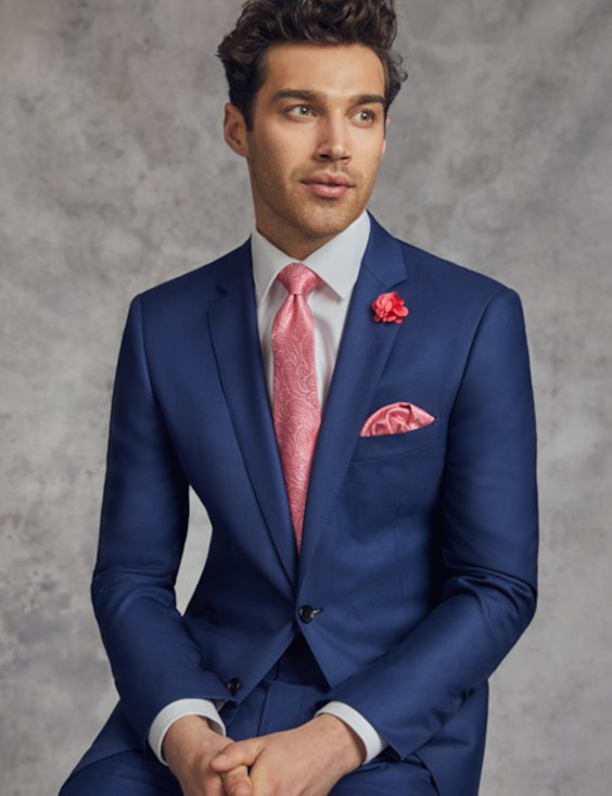 5 – Terno ou costume marinho com camisa rosa