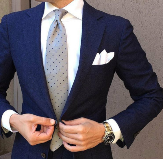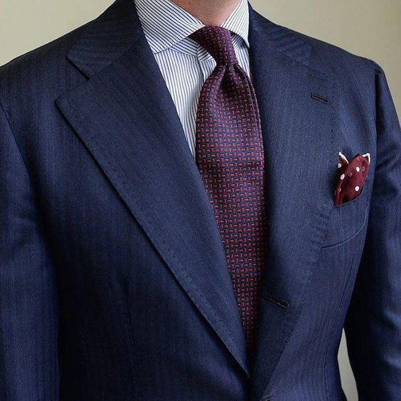 Mas você pode ser ainda mais ousado e optar por um vistosa gravata vermelha com pontos ou micro estampa, lembrando que o marinho também é considerado neutro na moda masculina, então dá para pareá-lo com tudo, mas é necessária muita atenção na hora de misturar camisa e gravata ou quando for inserir um acessório, como o lenço de bolso, por exemplo.