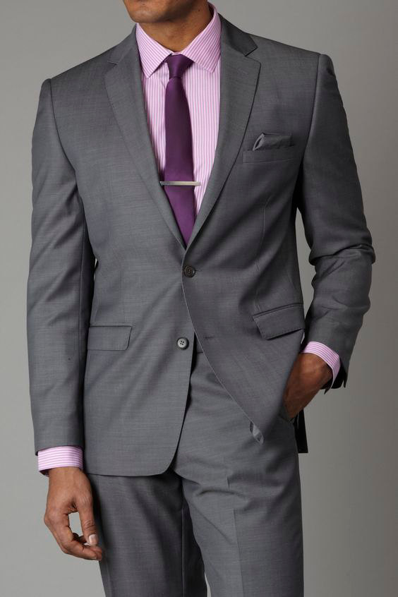 7 – Terno ou costume cinza com camisa lavanda ou lilás