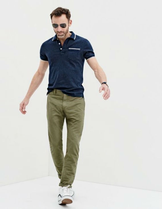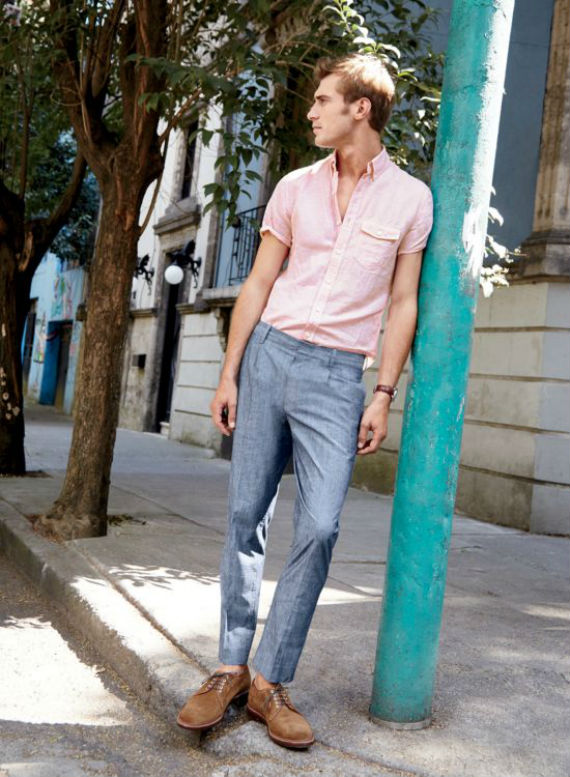 Camisas de manga curta e polos são base para o look que pode combiná-las com bermudas ou calça chino. O estilo navy, com azul fazendo par com branco é um hit, mas não é obrigatório, nos dias ensolarados cores vivas deixam o visual bonito e agradável de se ver, portanto não se furte do direito de escolher um rosa queimado, verde claro ou laranja. Os calçados ideais ainda são os tênis de lona, e quanto mais simples melhor.