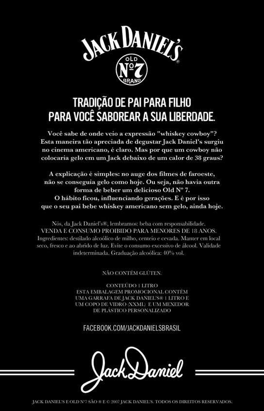 Sabe quando você navega pelos sites gringos e vê algum produto especial que está disponível para todos os países menos o Brasil? Pois bem, chegou a sua vez de deixar de passar vontade, pois a Jack Daniel’s® está lançando, para o dia dos pais, um pack exclusivo, contendo o tradicional Tennessee Whiskey, mexedor personalizado e um copo longo, o mais bacana é que o combo é um produto exclusivo para o mercado nacional.