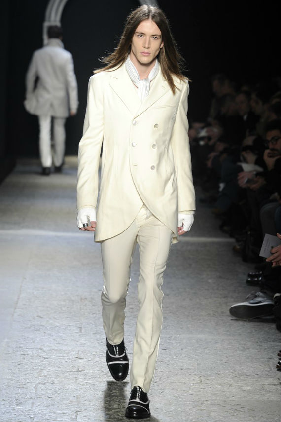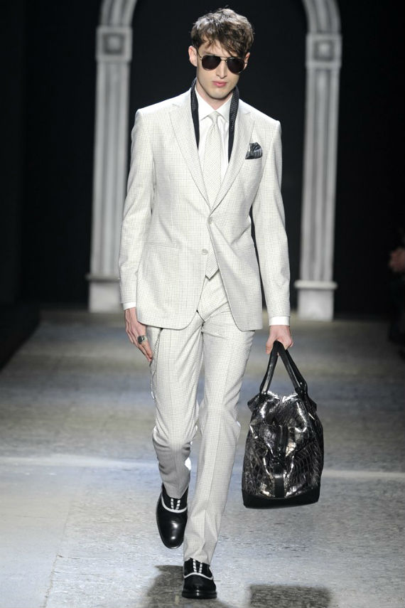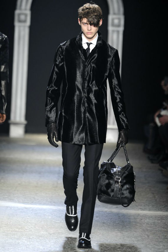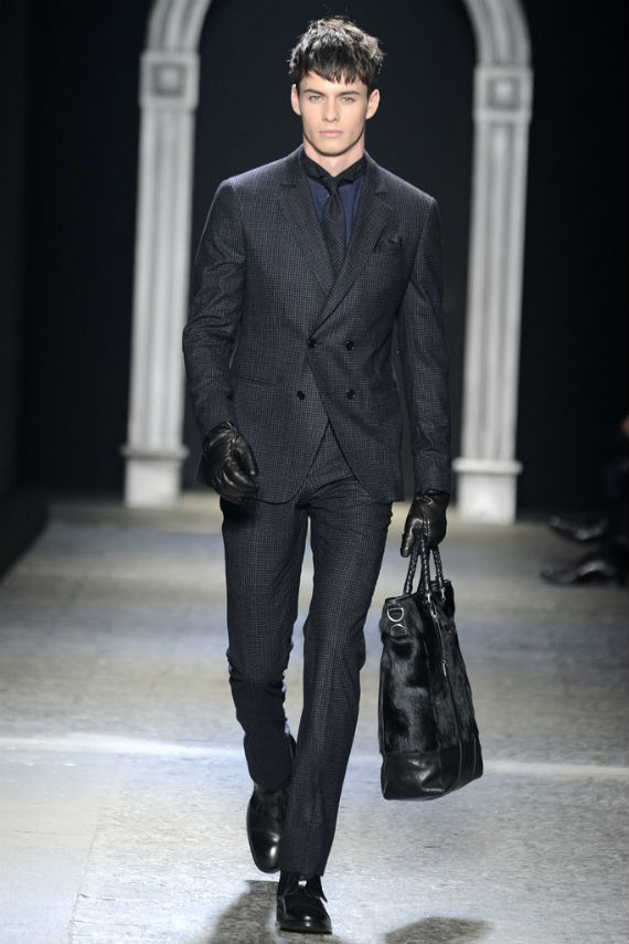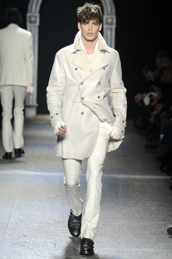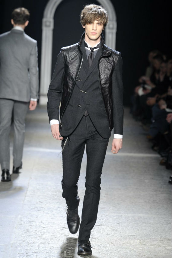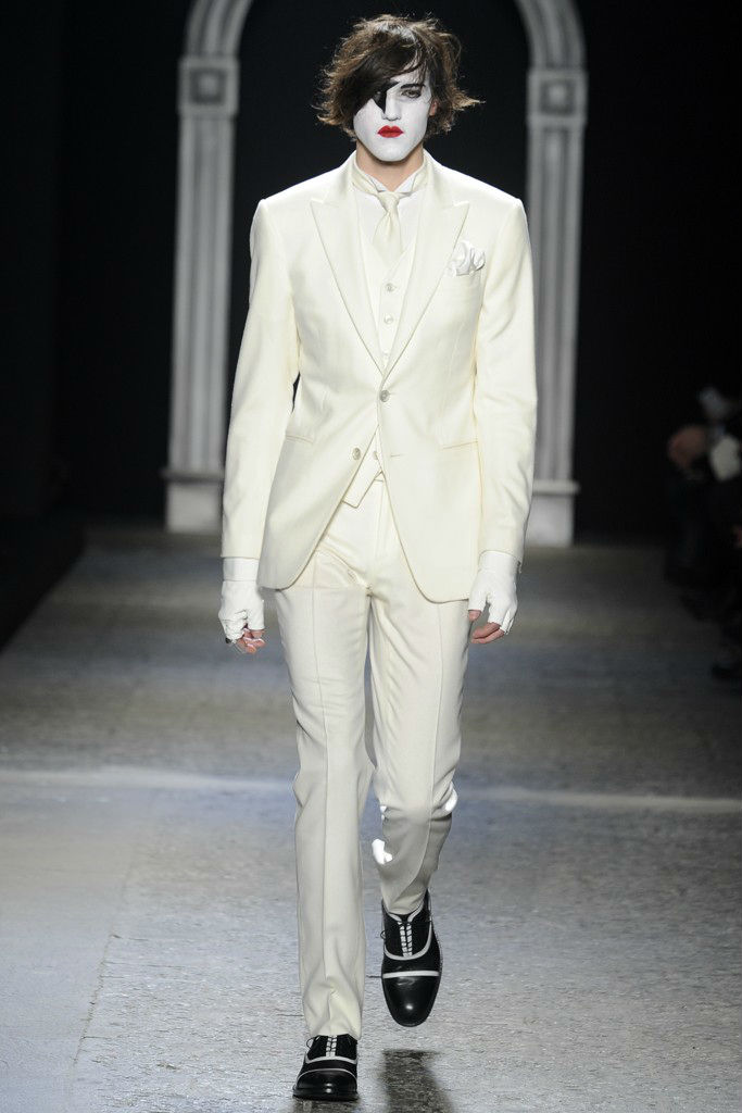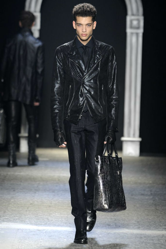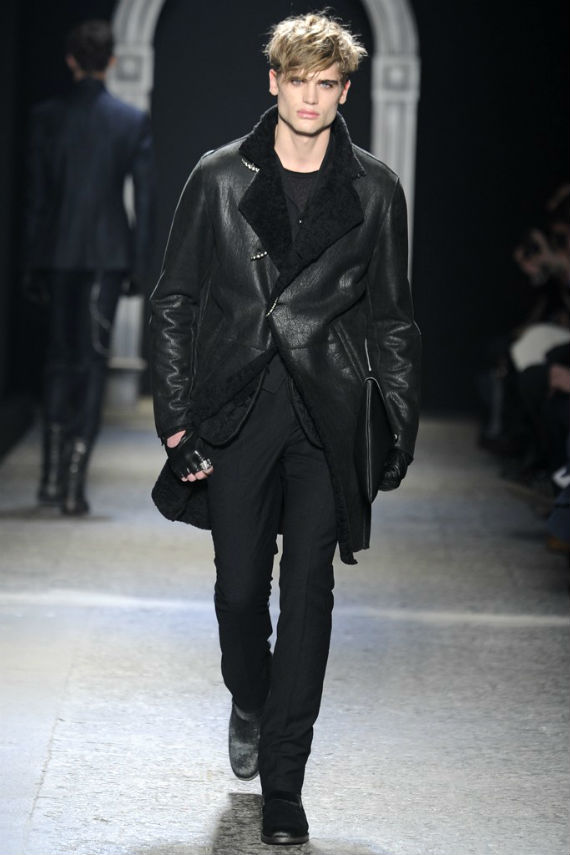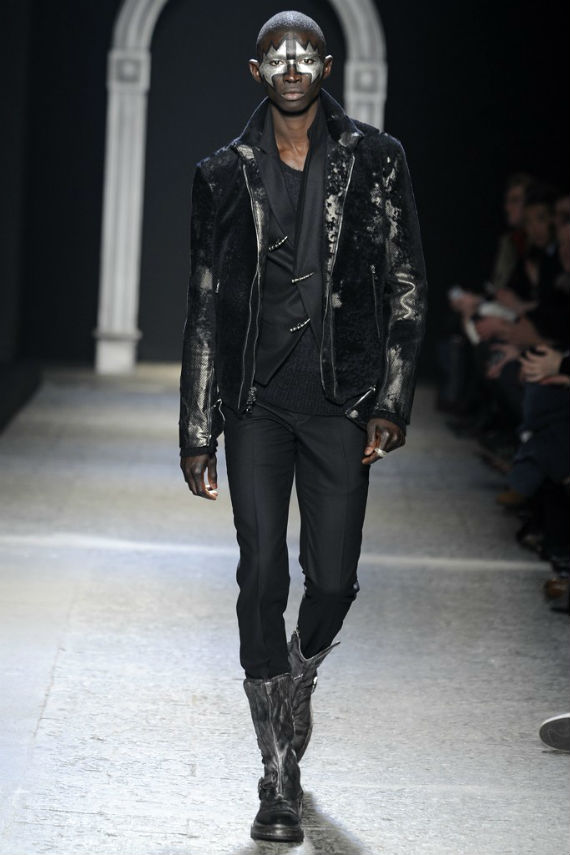 Inspirado no universo gótico, com direito a cenário imitando castelo medieval, John Varvatos desfilou seu outono/inverno 2014 em Milão e mais uma vez mostrou que seu estilo roqueiro anda de mãos dadas com a elegância. Em mais de uma oportunidade vemos peças de alfaiataria combinadas com jaquetas e casacos de couro dignos dos maiores astros do rock, que, aliás, deram as caras no final do evento, afinal o estilista conta com os integrantes do Kiss, uma das maiores bandas de todos os tempos, como garotos propaganda desta coleção e é óbvio que eles não poderiam ficar de fora em uma ocasião como essa!