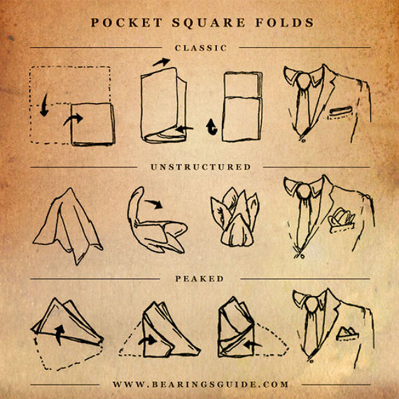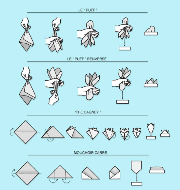 Neste diagrama temos 4 tipos de dobras clássicas.Lenço de Bolso: Aprenda Como Dobrar