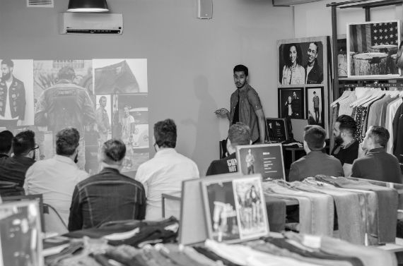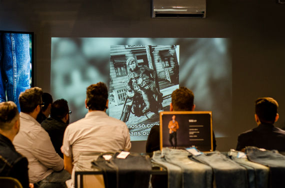 O showroom também serviu de espaço para a apresentação que incluiu uma breve introdução a história do jeans e sobre seu papel em diversos períodos do século XX, mostrando também como a Levi’s inovou para se adaptar as mudanças estéticas e culturais de cada período.