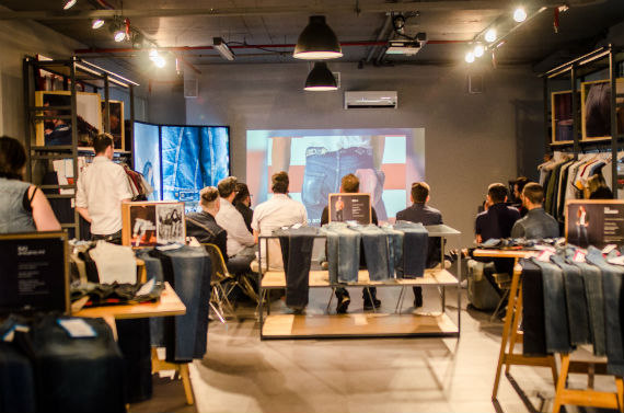 Em um espaço que é uma réplica de uma loja padrão Levi’s rolou um papo mais informal, com apresentação de produtos das coleções que estão nas lojas e peças especiais como essa calça da linha Commuter, especialmente desenvolvida para ciclistas e que repele água. Também foi o momento de tirar dúvidas e saber curiosidades sobre jeans e seu desenvolvimento.