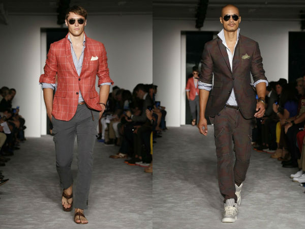 Para a semana de moda de Nova York, Michael Bastian apresentou uma coleção colorida e descontraída, onde parece que o trabalho ficou de lado a as peças foram direcionadas para os momentos de lazer do homem moderno. Com exceção da linha voltada para praia, que achei um pouco afetada e preferi não incluir na galeria (pode ser vista no vídeo), os costumeiros casacos e blazers bem cortados, pólos, chinos, malhas finas e camisas xadrezes ou listradas mostram que o estilista sabe agradar seu público preppy, apropriando-se dos clássicos, mas fazendo-os ganhar novos ares, seja com bolsos extras, cores vivas ou estampas inusitadas como o camuflado no terno ajustado com calça cargo.
