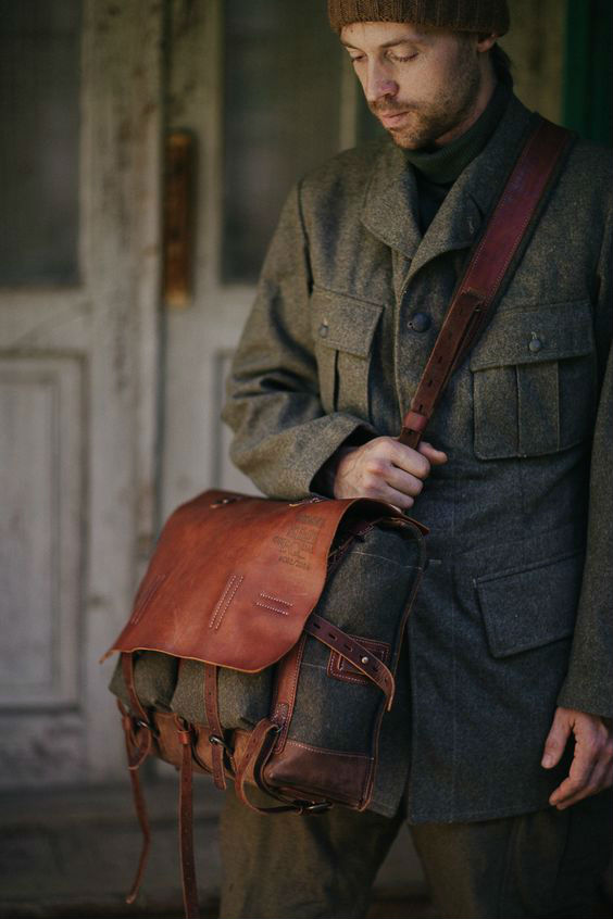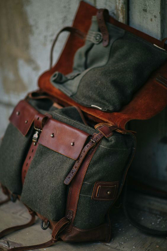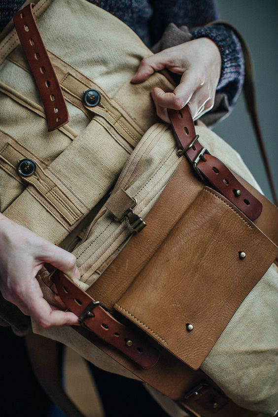 O visual de algumas bolsas faz pensar que elas foram encontradas em algum baú ou herdadas de algum bisavô cujo hobby era explorar a natureza. Mesmo os modelos mais simples trazem detalhes que dão personalidade, seja na cor do couro, nas costuras ou em botões feitos para parecerem centenários. As cintas quase sempre tem uma finalidade como prender a mochila a cintura, garantir que os compartimentos fiquem bem fechados ou prender algum acessório do lado de fora da bolsa como um cantil, um cobertor ou um saco de dormir.