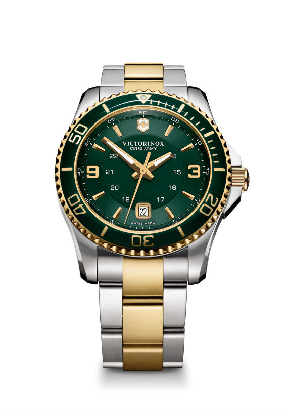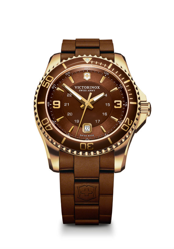 Os relógios da nova coleção Maverick da Victorinox chegam ao Brasil com mostrador reestilizado, clean e com as novas cores azul, marrom, verde e vermelho, além de braceletes de aço ou pulseiras de borracha nas cores dos mostradores. Só o modelo com mostrador vermelho será lançado com bracelete de aço e caixa de 43mm.