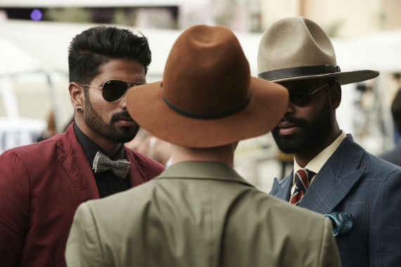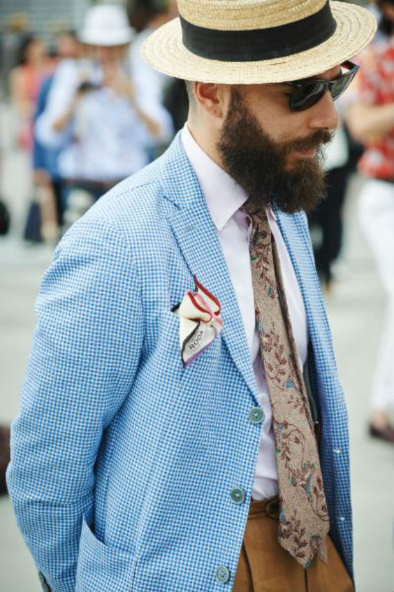 O blazer é uma peça praticamente obrigatória nos corredores da Pitti Uomo, mas também é notável a atenção dada a acessórios como chapéus (quase onipresentes) lenços, gravatas, óculos, relógios e pulseiras, provando que pensar neles é quase tão importante quanto nas peças fundamentais.