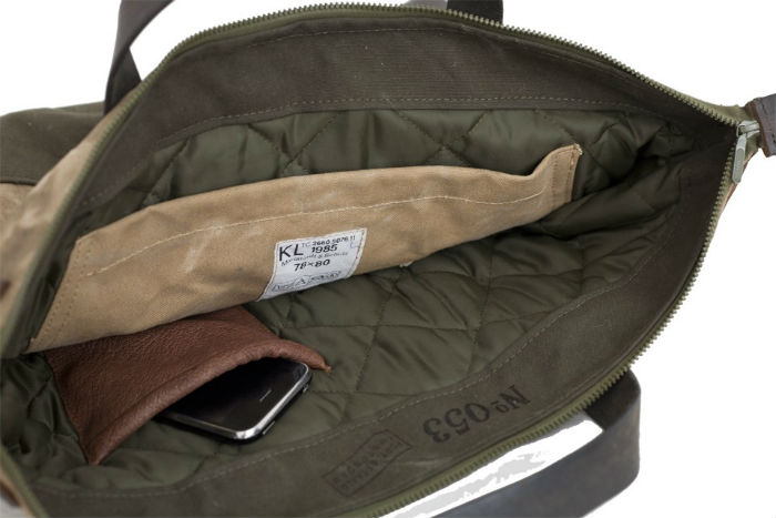 Ao contrário do que possa indicar aparência e o material antigo, as bolsas não vem de nenhum brechó ou antiga oficina de artesãos veteranos pós Segunda Guerra, a prova disso está no bolso estrategicamente instalado para acomodar seu smartphone ou na divisória para notebook, ainda assim, devo admitir: a pátina na lona utilizada no revestimento externo de algumas peças tem um charme vintage inegável.