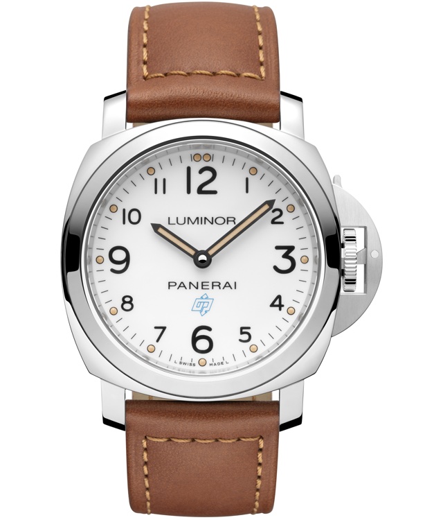 A característica marcante deste modelo é o logo que traz as iniciais da Officine Panerai acima das 6 horas. As duas letras estão conectadas e iniciam e terminam com setas, indicando céu e mar, os pilares da história da grife, pois foi no início do século XX, que a Officine Panerai, em Florença, começou a criar instrumentos óticos e outros de precisão para a Marinha Real Italiana, não apenas para operações subaquáticas, mas também para observar o céu.