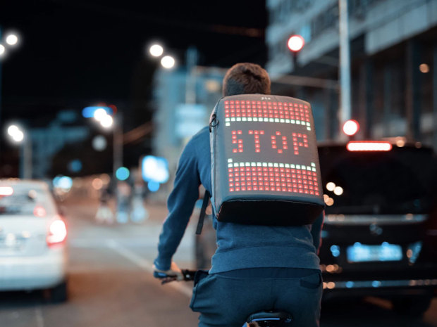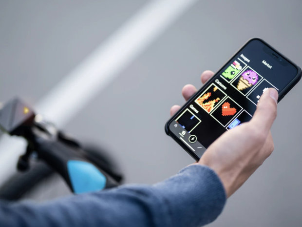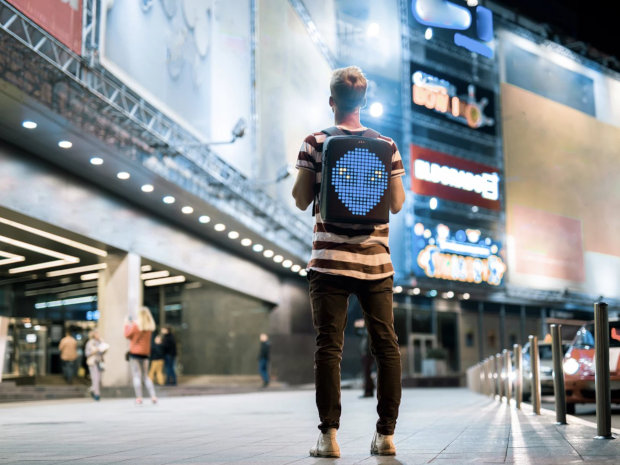 Conectada ao seu smartphone, seja ele Android ou iOS, ela possui um app que permite mudar os desenhos e animações de acordo com uma galeria já fornecida ou criar os seus próprios. Além disso a mochila ainda pode ajudar ciclistas mostrando sinalização de tráfego (seta para direita ou esquerda, pare!) ou então exibir, mensagens, a hora ou um cronômetro. Outra função bacana é a de powerpack, ou seja, você não precisa ficar com medo de perder as funcionalidades da peça devido a um celular descarregado.