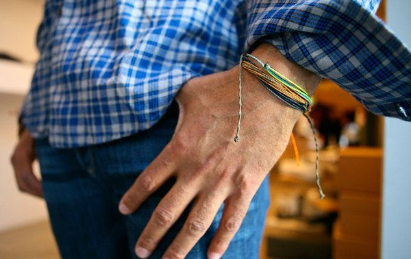 A verdade é que as cores vibrantes, o material simples e o apelo artesanal das pulseiras são a combinação certa, na hora certa, quando o tal do “pulseirismo” (não gosto do termo) está pegando forte com o público masculino que adotou o acessório tanto em looks esportivos, quanto nos casuais ou sociais, tornando-se comum ver homens de terno e gravata revelando a pulseira da Pura Vida quando levantam o braço ou puxam a manga do blazer para ver as horas, talvez para demonstrar que por trás daquele aspecto sério, próprio dos executivos, existe uma pessoa descolada que ama a vida, a natureza e a aventura.