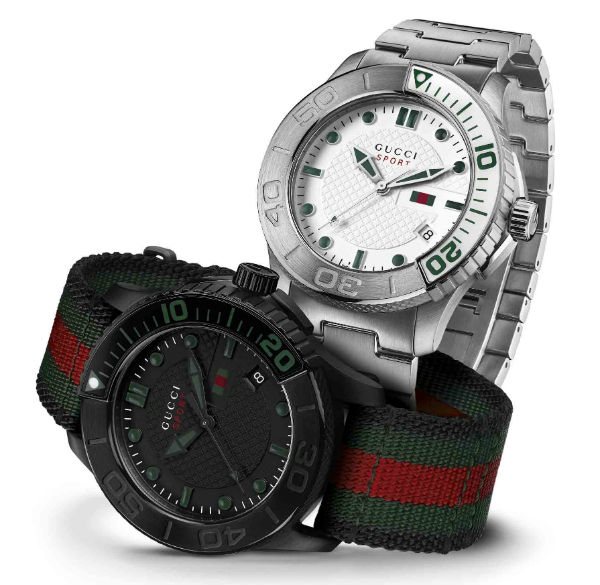 Os amantes de relógios esportivos tem mais um modelo para cobiçar, a Gucci Timepieces está lançando no Brasil o G-Timeless com o famoso Red Green Red característico da marca.