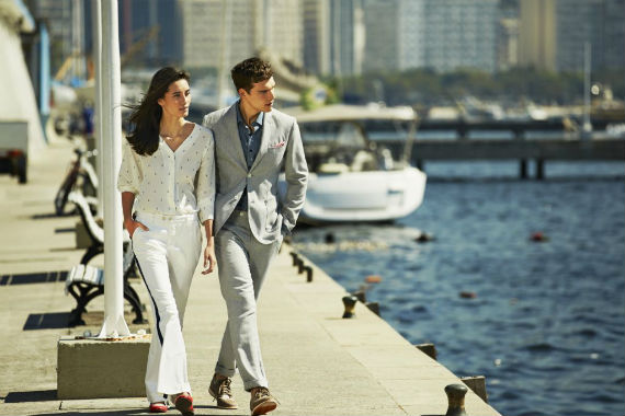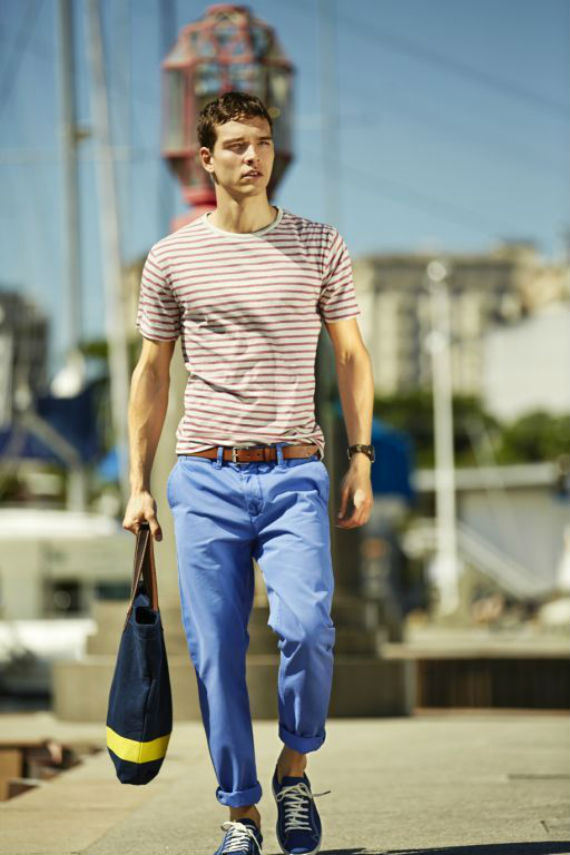As palheta da primavera da Richards passeia por tons de azul, off white, amarelo e vermelho pastel aplicados em tecidos como o linho e algodão. Nas estampas temos o listrado e o xadrez de tom sobre tom mantendo a pegada navy.