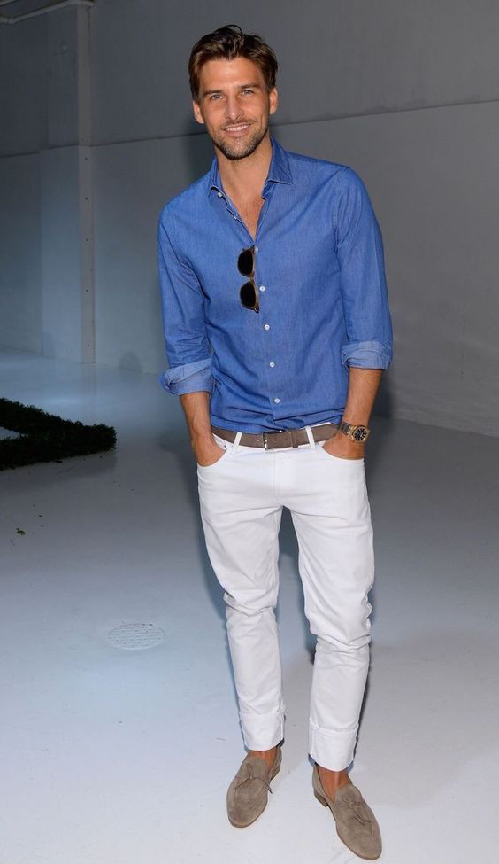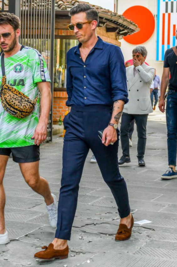 A chino é a melhor pedida para o verão, leve e casual ela se encaixa em diversas situações e dress codes, mas não há nada que te impeça de usar seu loafer casual com um jeans ou, indo em outra direção, com calças de alfaiataria, como você poderá ver no exemplos que eu vou mostrar mais abaixo.