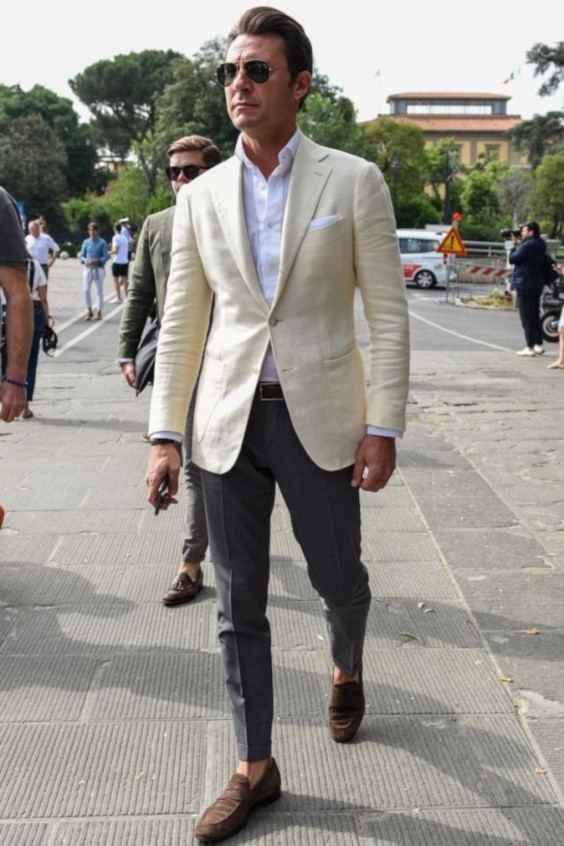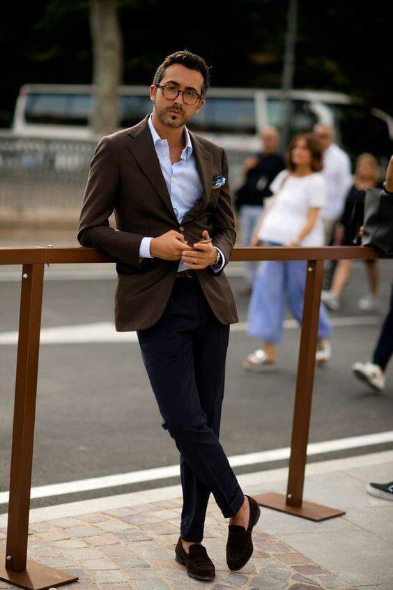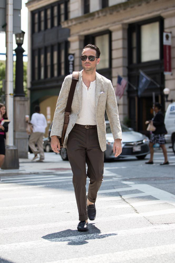 Também é possível explorar cores menos sisudas como o marrom médio e até alguns tons de caramelo. Você vai ver que calçados pretos ficam sérios demais nesse estilo de traje.