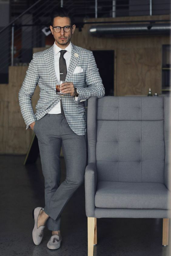 Escolheu um paletó xadrez? Então o melhor é que sua calça seja lisa, caso contrário os padrões vão ficar brigando por atenção.