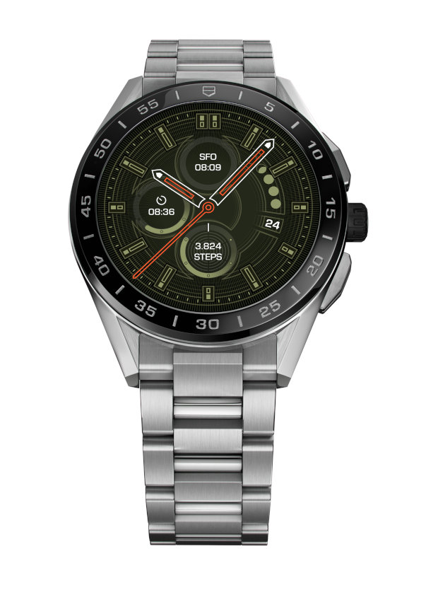 O TAG Heuer Connected Watch entra em sua terceira geração com caixas de 45 mm de aço ou titânio, detalhes polidos e escovados, coroa centra giratória com dois acionadores, elegantes pulseiras a escolha e fivela de fechamento dobrável.