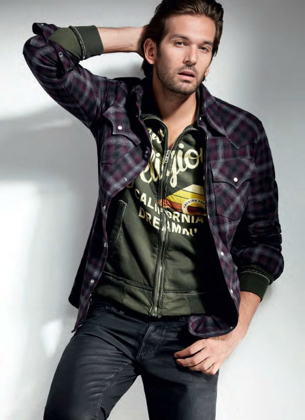 O inverno 2013 da True Religion tem tudo que agrada o homem: denim escuro, camisas xedrezes com tons frios, camisas e camisetas em tons terrosos, moletons com aparência vintage e confotáveis coletes de nylon.