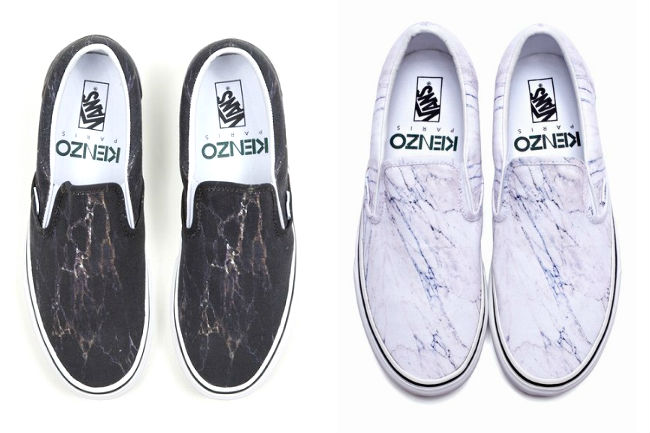 As estampas são variadas como frutas e imitação de mármore vindos da coleção inverno 2012 da marca, aplicados aos modelos Vans Authentic, sendo que pela primeira vez Kenzo as coloca em um clássico modelo slip-on.
