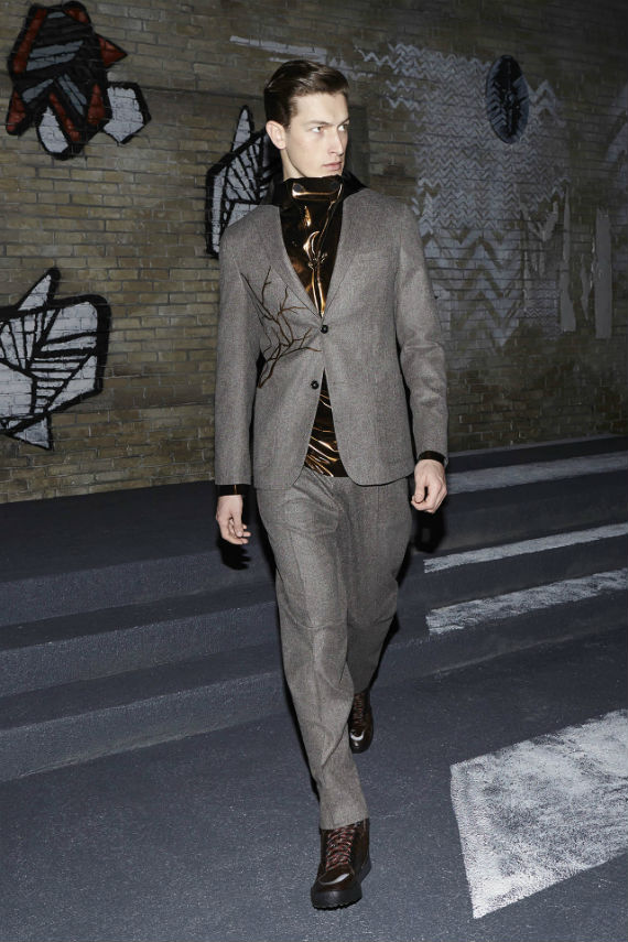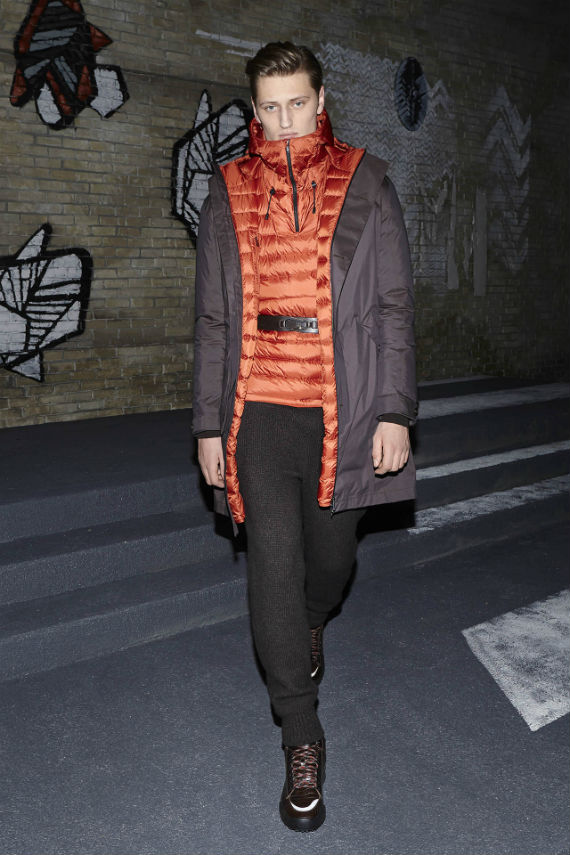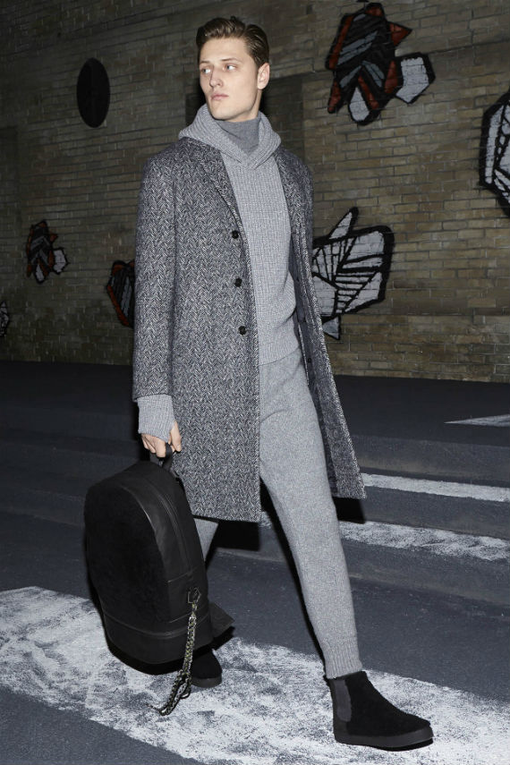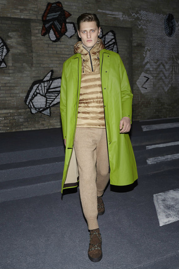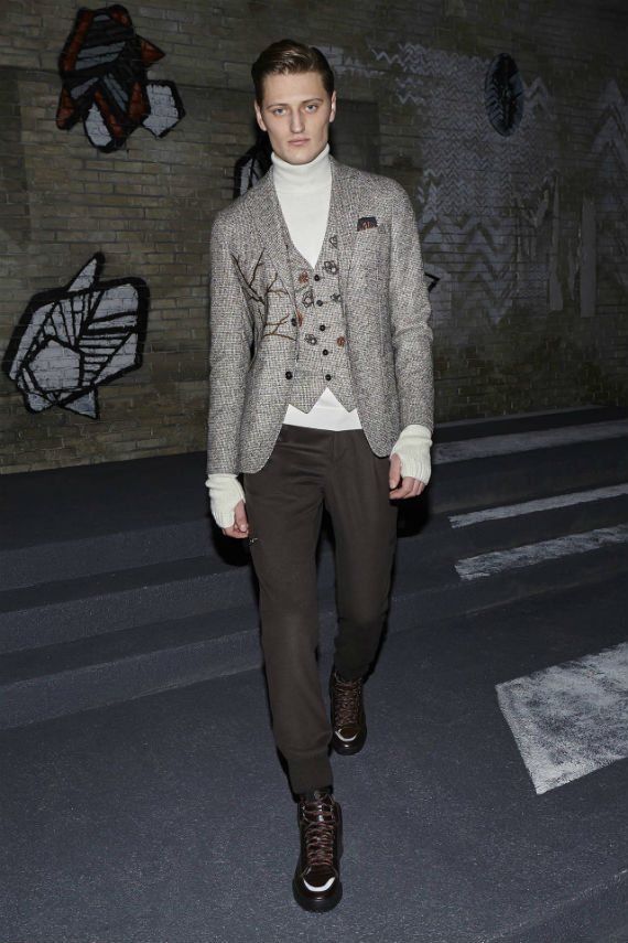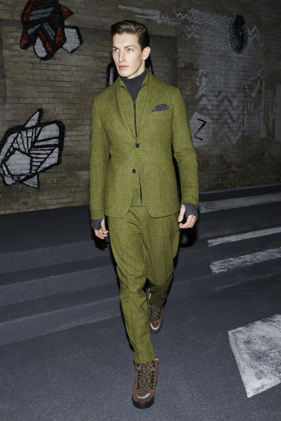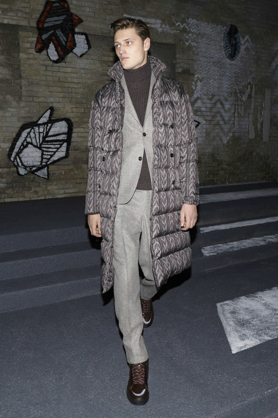 Prevendo uma nova era na vestimenta urbana, Z Zegna mistura casacos alongados feitos de tweed com jaquetas em tecidos tecnológicos e visual metalizado. Nos complementos temos tênis onde o streetwear ganha reforço de detalhes típicos de calçados feitos para trilhas e escaladas e até mesmo as bolsas fazem uso das malhas encontradas nas roupas para criar uma linha de acessórios perfeitamente alinhada com o restante da coleção.